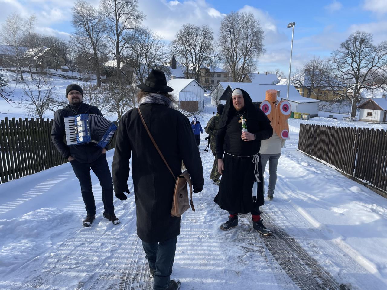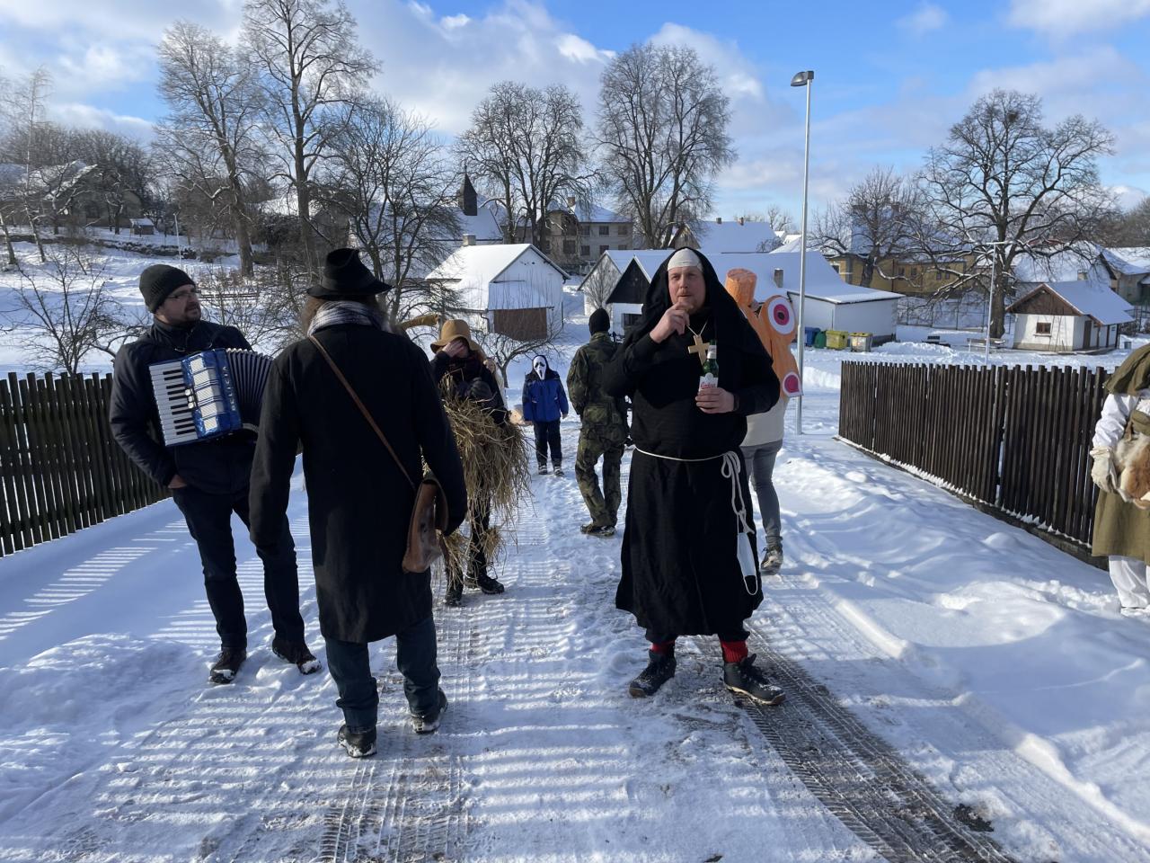 Tradiční masopustní průvod byl v letošním roce nahrazen masopustní procházkou po vsi.